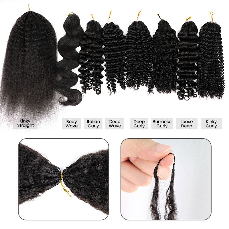 Feather Crochet Human Hair Extensions With Invisible String In The Middle Pre-Separated Knotless For Braids 120gram (80 Strings/PC)